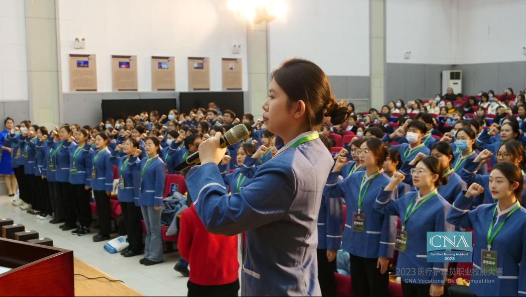 沧州市卫生健康委员会副主任胡尚友在致辞中表示,首届医疗护理员职业技能大赛是各职业院校学生展示医疗护理员技能风采的舞台,有利于职业院校深化“三教”改革,推进“岗课赛证”综合育人,提升社会影响度和美誉度。他对大赛承办校、参赛院校以及选手们提出希望和要求,希望通过多方合力,将本次大赛办出特色和水平,树立医疗护理服务标杆,推动医学职业教育改革,为职业教育高质量发展和健康中国建设发挥新作用、做出新贡献。